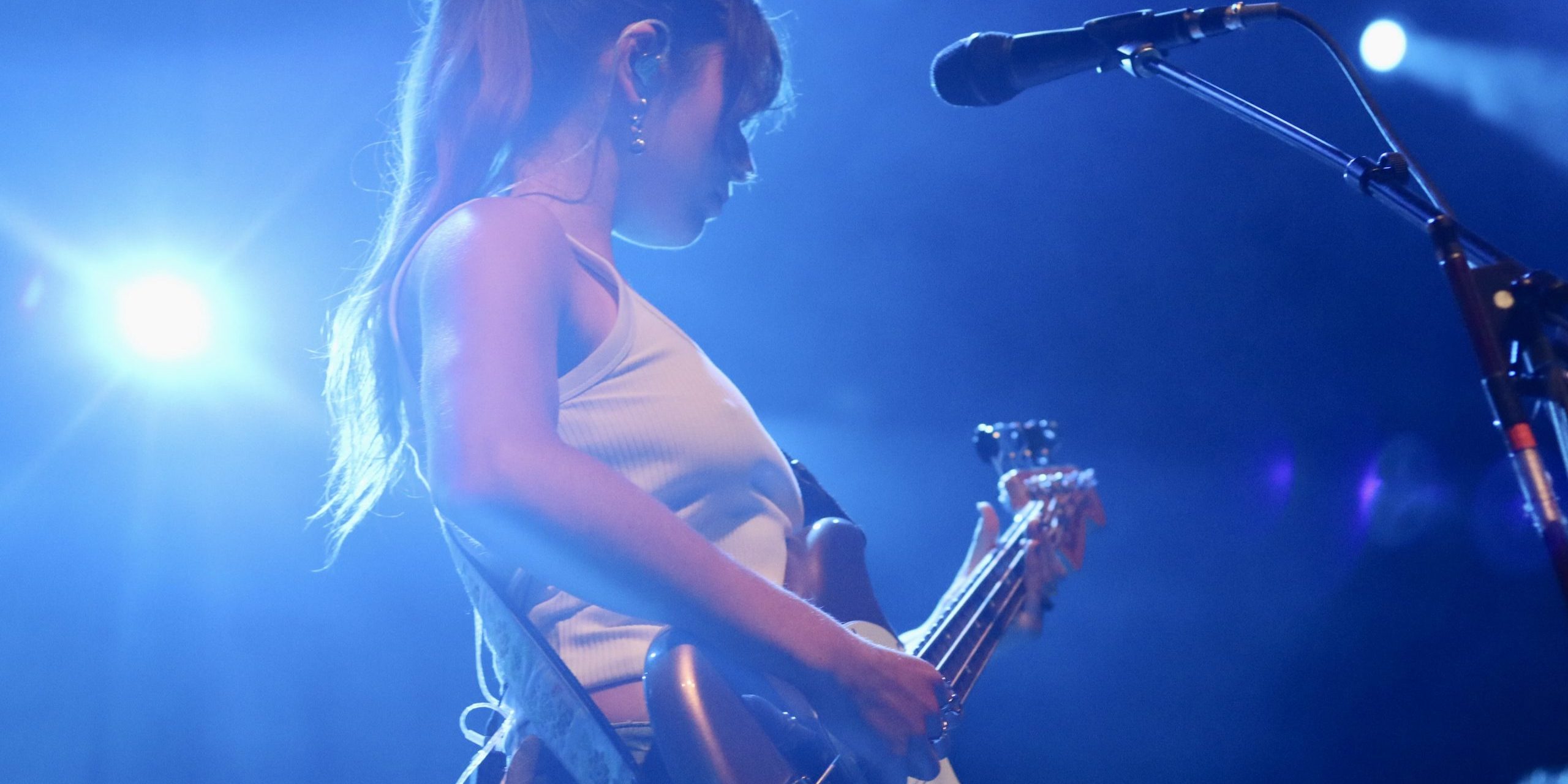 Tyler Hyde is a jack of all trades. Situated on center stage, she floated seamlessly between instruments and roles. Before the intensely tragic (and beautifully written) song, “Nancy Tries to Take The Night,” she sipped from a watermelon Whiteclaw that matched the watermelon decal on her bass. Her bass playing ranged from punchy when she played with a pick to droning when she whipped out a bow. The crowd erupted when she started playing the coming-of-age song, “Happy Birthday,” and I was moved to tears when she took the piano for “Socks.” Right before the last song of the night, she stated in solidarity with Palestine that, “More importantly than anything that’s happening on this stage, we need to be thinking about what’s happening in Gaza and the West Bank. Never stop talking about it.”