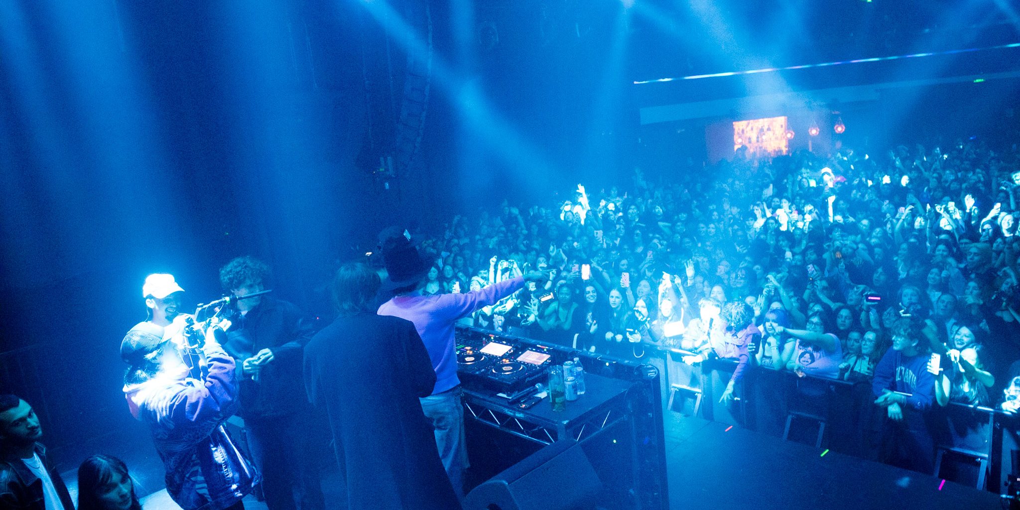During their set, Enya Umanzor, Phillip’s co-host on Emergency Intercom, rushed to the stage with friends to form a dance party behind the DJ booth. The crowd fed off of their energy, as the venue filled with dancing and beaming smiles. Throughout Phillip’s set, he incorporated hilarious bits in reference to Emergency Intercom. Whether it be showing off his (very real) Birkin bag or getting a (just as real) glass bottle smashed over his head by Umanzor, Phillips offered a unique experience for fans of the podcast. His stage presence made it clear that he was born to entertain.