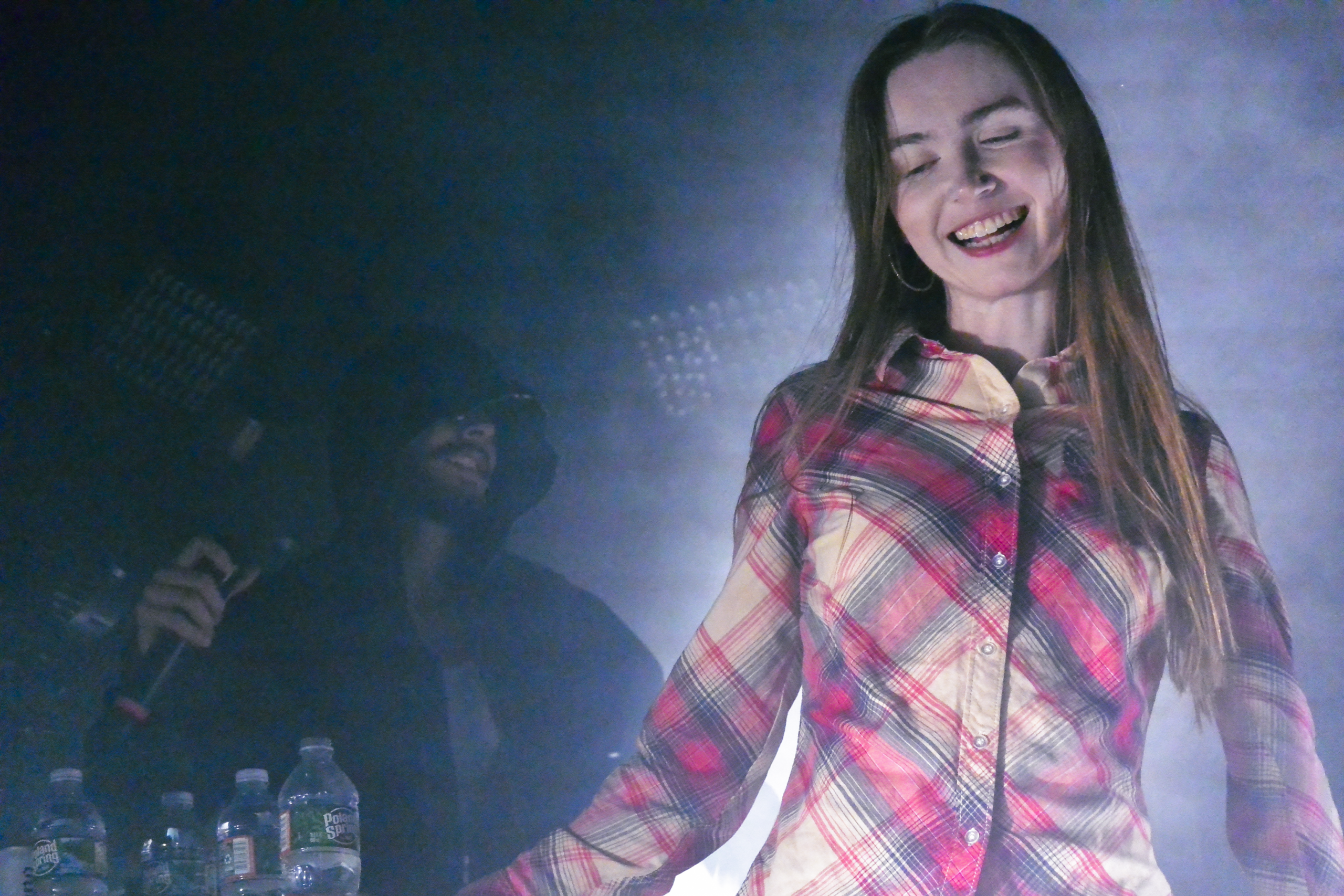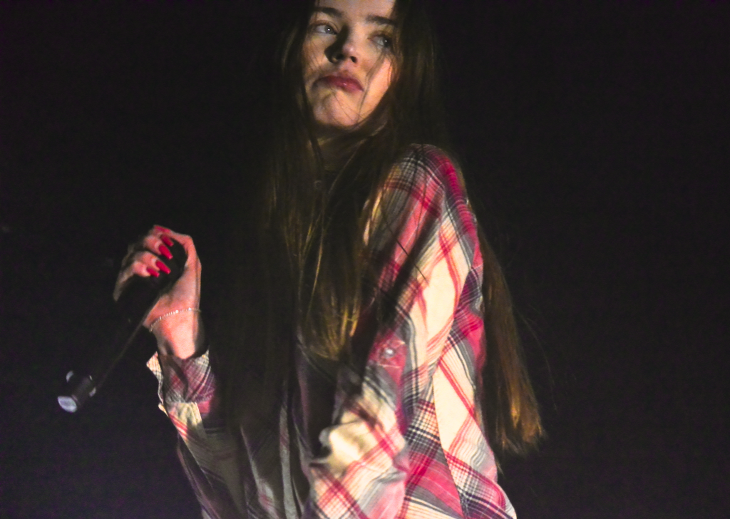 Even with a two-page setlist, Snow Strippers had an unwavering energy that put the crowd under their spell. Tati’s performance was enchanting. She’s a modern-day siren, donning autotune and 2000s Abercrombie. You could barely make out her silhouette through the fog and flashing lights. Her dancing lulled the crowd into the fray, enticing the audience to jump to the beat. Crashing into bodies was unavoidable.