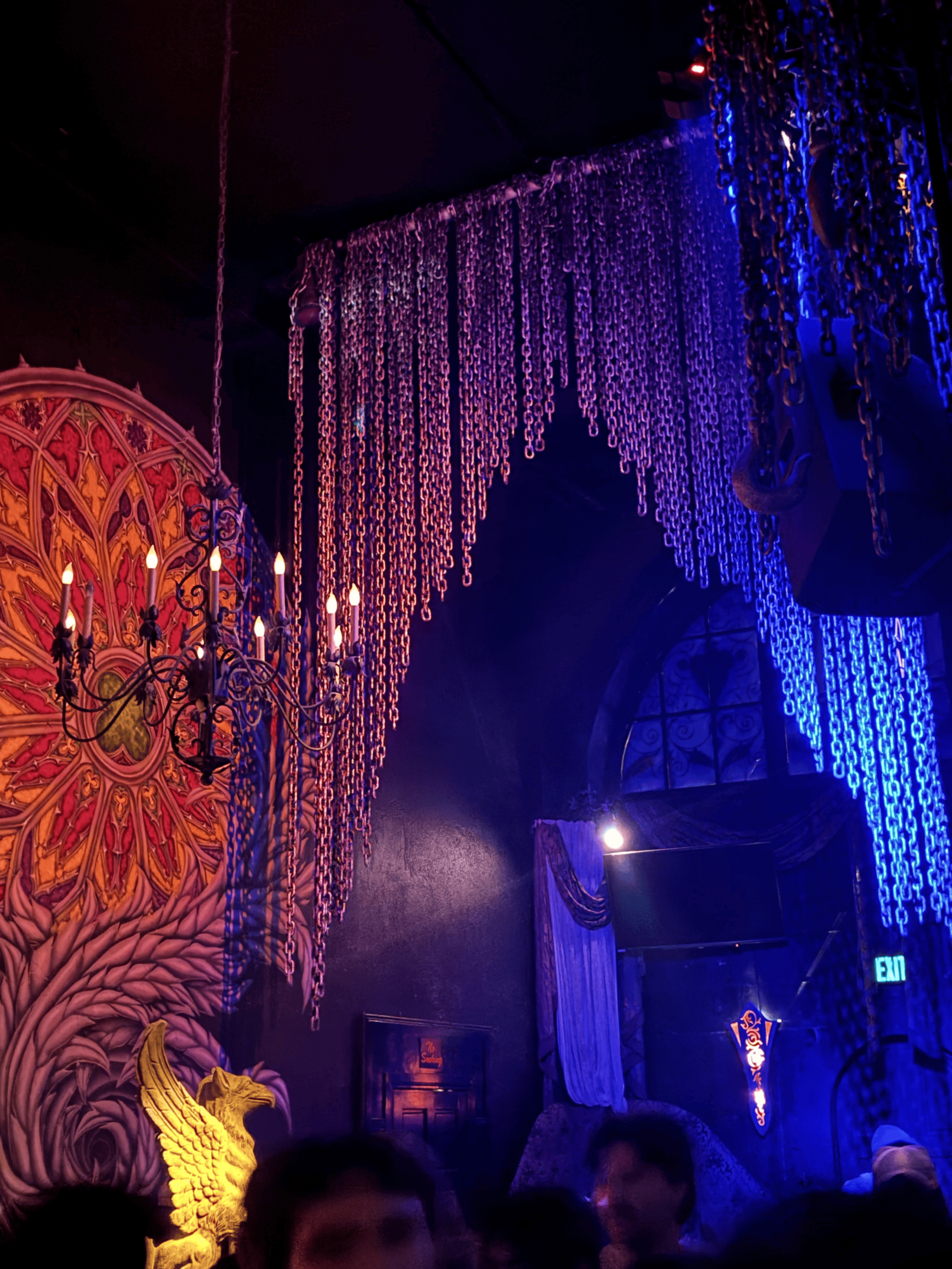 Walking into The Goldfish felt like stepping into a movie. You are immediately greeted by two pool tables with a long queue, a packed bar with the menu written in dry-erase marker on a goldfish tank, and an eerie glow emanating from the room of vintage pinball machines. If you showed up late like I did, then the music was already going and was loud enough to draw you into the stage room. A huge disco ball twirled above the crowd.