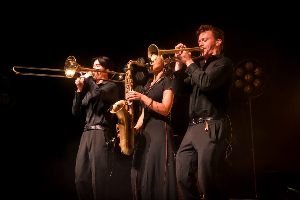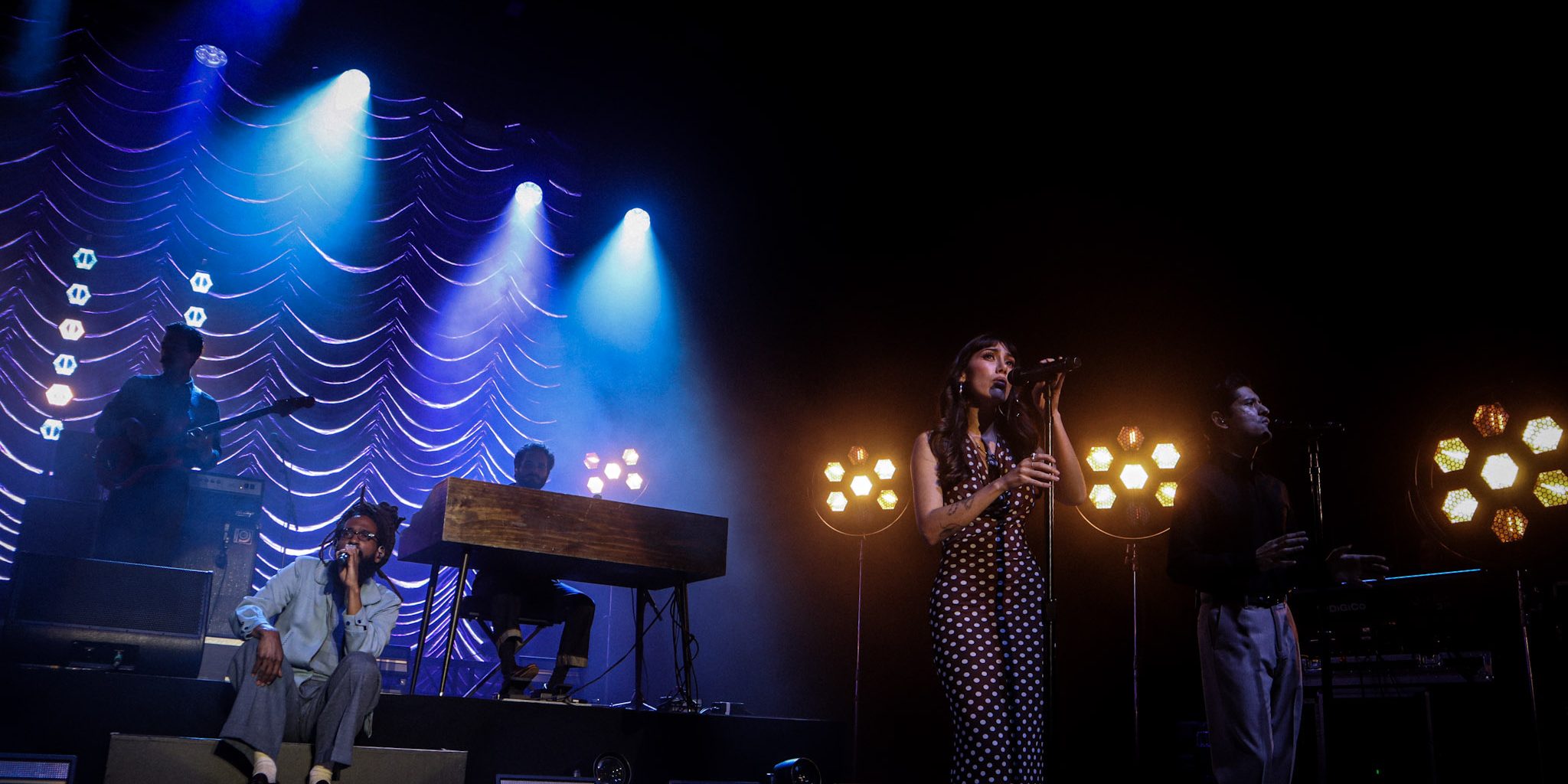 Our timing felt very serendipitous as we walked in, sitting down just three minutes before orange lighting slowly began to glow from the stage, and the horns section (all three of which are UCLA Herb Alpert students) began to play. The entertaining frontman and lead singer, Josh Lane, entered as the crowd cheered, and the band dove into “Love It Comes Easy.”