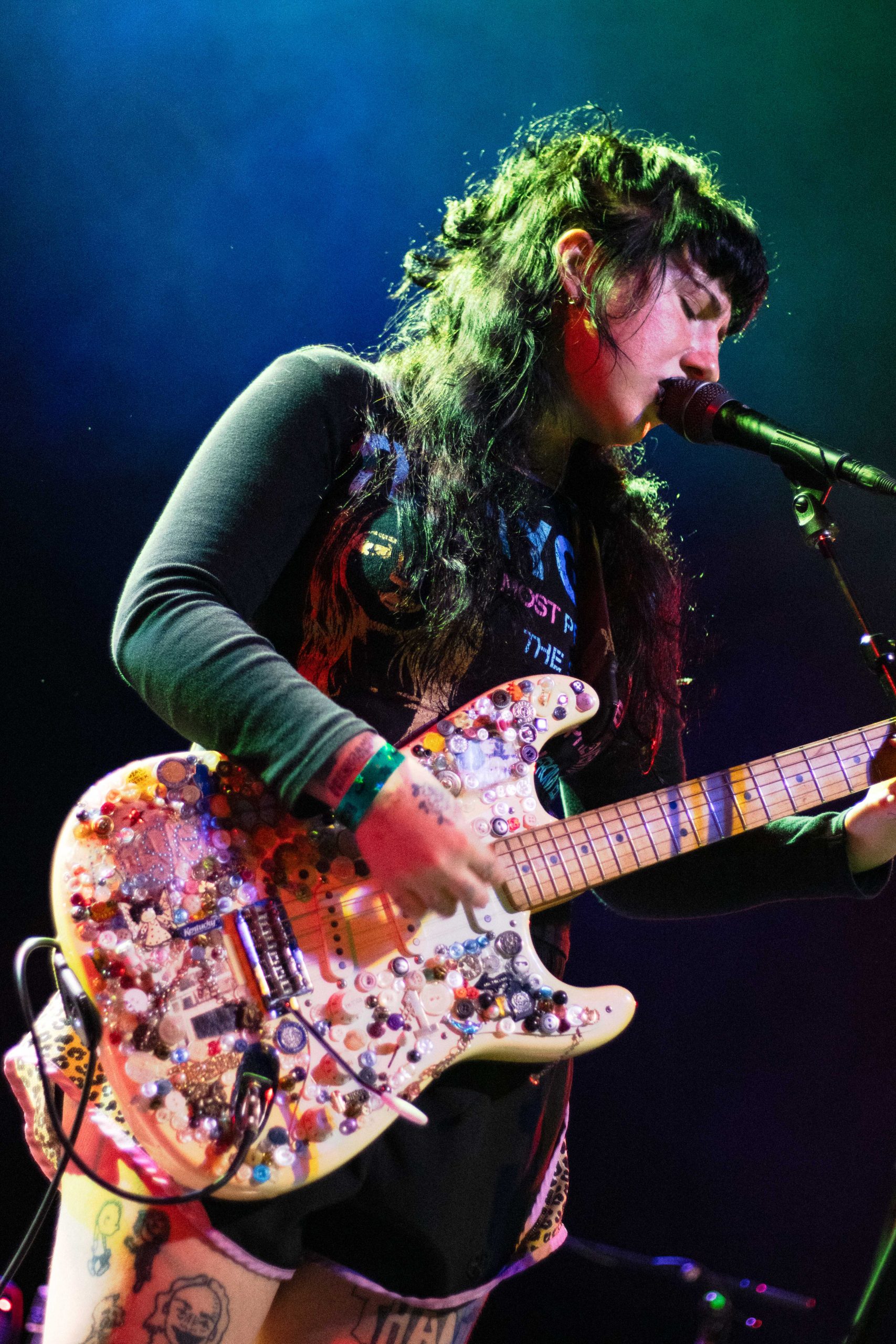 “Phish Pepsi,” another highlight of the set, welcomed Dan Wriggins from Friendship back to the stage. It is a vulnerable documentation of streets from her childhood: “Rode my bike home, drunk off of a Four Loko.” The band’s consistent ability to create a widely hard-hitting musical landscape with ultraspecific lyrics never ceased to amaze me throughout the night.