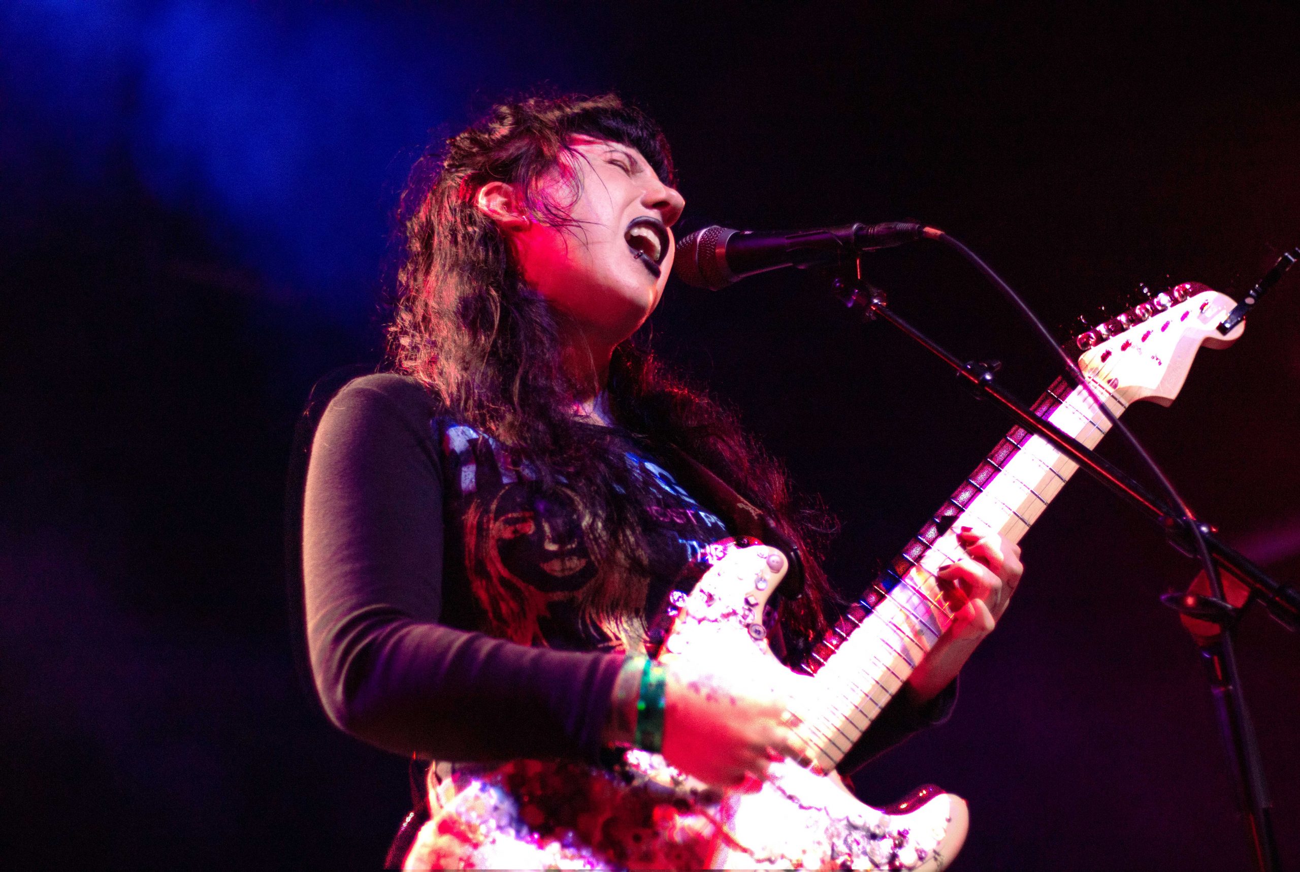 About halfway through the set, Hartzman surprised the crowd with a cover of “Lonely Girls” by Lucinda Williams. It was a hymn-like break from the usual headbanging and moshing of the show with standout lyrics (“Sweet sad songs sung by lonely girls / Pretty hairdos worn by lonely girls”). Then followed “Gary’s II,” the closing track off Bleeds and, according to Hartzman, the second song she’s written dedicated to her landlord Gary, because “Most landlords are not great, but he was, so he gets two songs.” It feels like a caricature of a classic Appalachian campfire tune.